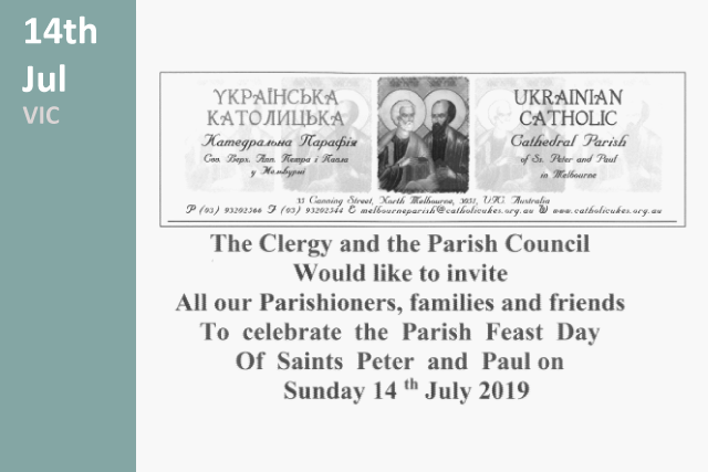 Details The Clergy and the Parish Council would like to invite all their parishioners, families and friends to celebrate the Parish Feast Day of Saints Peter and Paul.