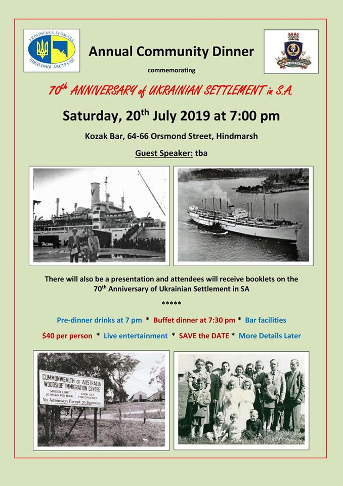 | Details | Annual Community Dinner to commemorate the 70th Anniversary of Ukrainian Settlement in SA.
