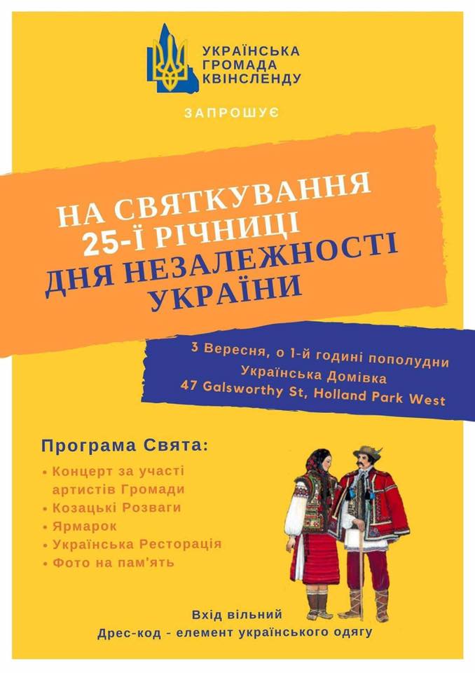 Details The Ukrainian Community of Queensland Inc. invites you to come and celebrate 25 Years of Ukrainian Independence!